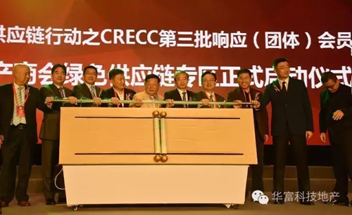 當(dāng)天大會上,還舉行了房地產(chǎn)行業(yè)綠色供應(yīng)鏈行動之CRECC第三批響應(yīng)機構(gòu)亮相及全聯(lián)房地產(chǎn)商會綠色供應(yīng)鏈專區(qū)正式啟動儀式。