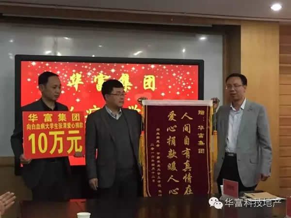 華富集團(tuán)董事長(zhǎng)陳啟建得知這一消息后,第一時(shí)間安排與農(nóng)業(yè)大學(xué)取得聯(lián)系,為飽受病疼折磨的學(xué)子雪中送炭,捐款十萬(wàn)元,為他送去活著的希望。