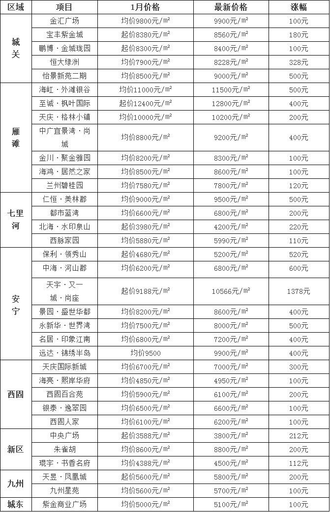 蘭州最新房?jī)r(jià)漲幅一覽