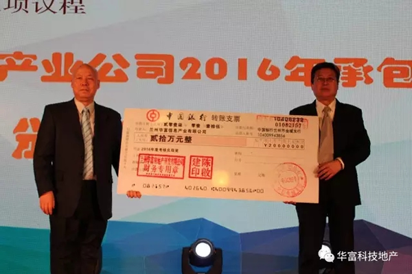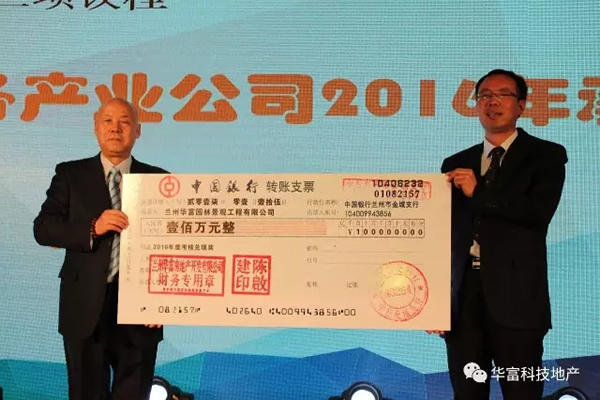 隨后通報(bào)蘭州華富集團(tuán)各產(chǎn)業(yè)公司2016年度目標(biāo)任務(wù)完成及考核獎(jiǎng)勵(lì)情況,董事長(zhǎng)先生向各個(gè)產(chǎn)業(yè)公司發(fā)放了現(xiàn)金獎(jiǎng)勵(lì)。